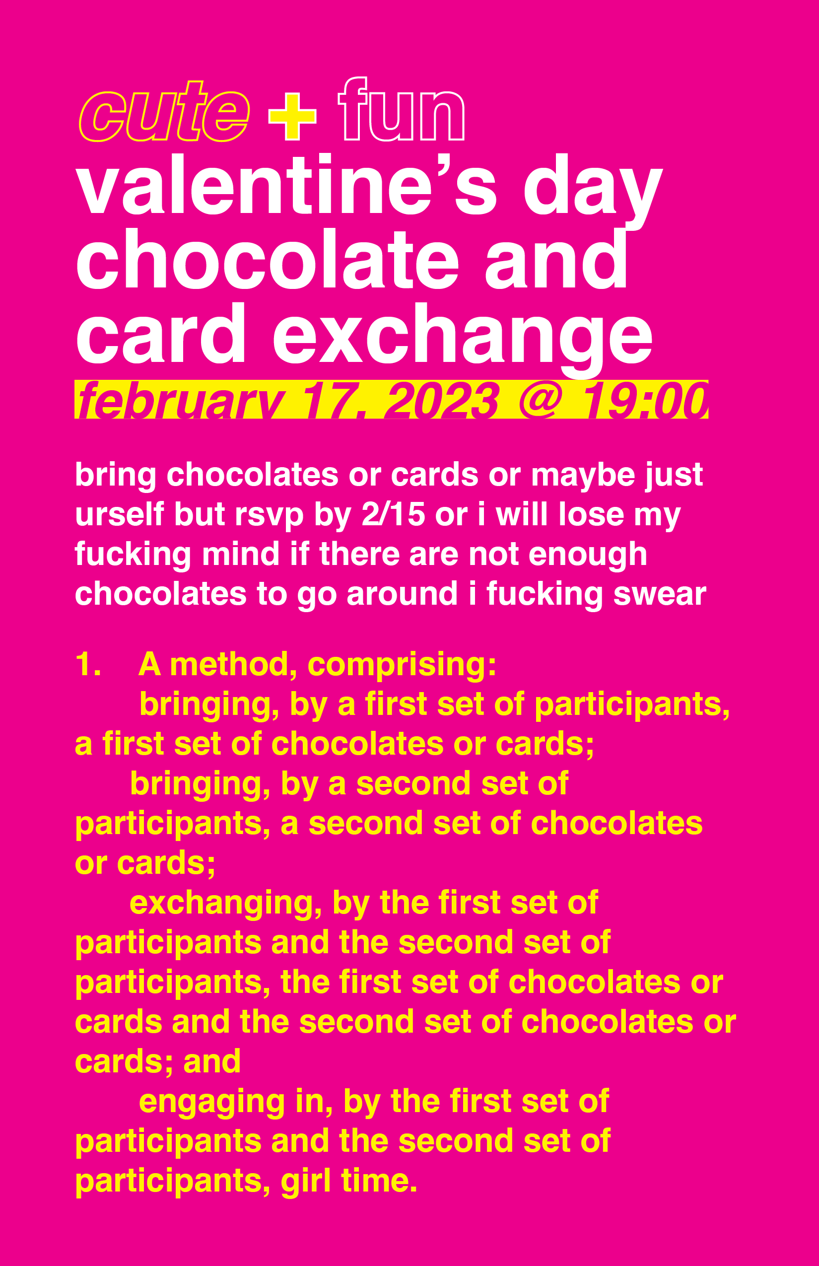 I made this really cute and fun This party never actually occurred which was unfortunate because the invitation was so fun and cute.Valentine's day party invitation and my friends did not appreciate it because they are all narcs so hopefully someone else will.